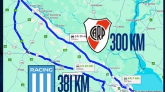 Para la hinchada de Racing se elaboró este recorrido para los micros: desde el Centro Comercial de Villa Corina, por Acceso Sudeste, Autopista Dr. Ricardo Balbín, luego Autopista 25 de Mayo, toman Autopista Perito Moreno, General Paz, Acceso Oeste, seguir por Ruta Número 6, Ruta Número 8 a Pergamino, Ruta Número 32, Ruta Número 18 con ingreso a la provincia de Santa Fe hasta el estadio.